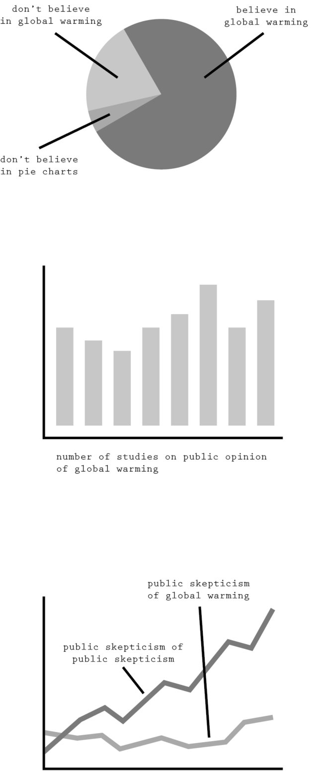 Consider, for example, the most publicized question from a 2009 Pew Research Center poll: “From what you’ve read and heard, is there solid evidence that the average temperature on earth has been getting warmer over the past few decades, or not?” This question measured perceptions of scientific evidence that the respondent has read or heard about, not the respondents’ personal opinions about whether the earth has been warming. Someone who has had no exposure to scientific evidence or who perceives the evidence to be equivocal may nonetheless be convinced that the earth has been heating up by, say, the early blossoming of plants in his garden.