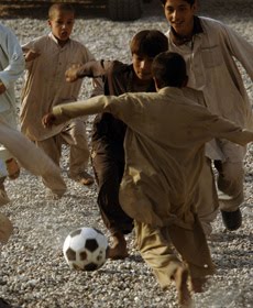 Local children play soccer at the Nangarhar Provincial Reconstruction Team Forward Operating Base in Jalalabad, Afghanistan. (U.S. Air Force/Joshua T. Jasper)