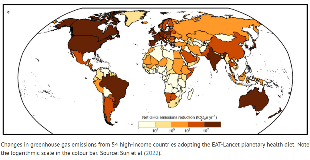 “A criação de gado contribui para a emissão dos gases de efeito estufa, então, que tal se a gente reduzir o nosso consumo de carne e escolher um prato vegetariano na segunda-feira?”